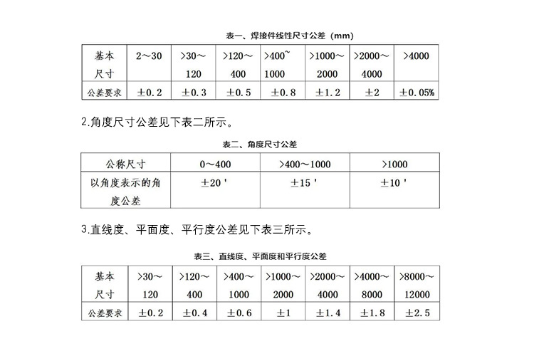 3.2.1焊縫應牢固、均勻,不得有虛焊、裂紋、未焊透、焊穿、豁口、咬邊等缺陷。焊縫長度、高度均不允許超過圖紙長度、高度要求的10%。